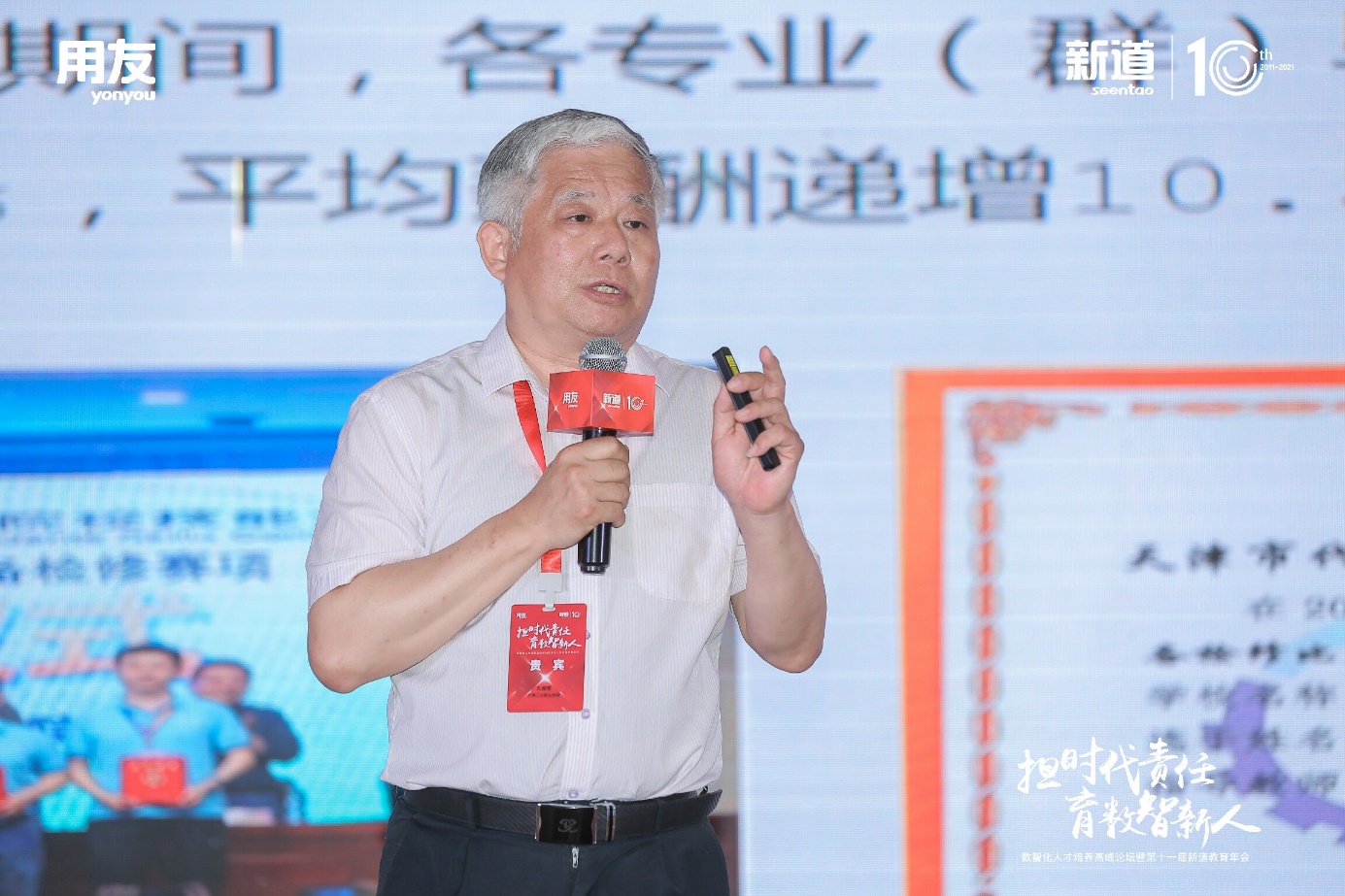 2021年5月29日,由用友網絡科技股份有限公司、新道科技股份有限公司共同舉辦的數智化人才培養高峰論壇在北京舉行。論壇以“擔時代責任 育數智新人”為主題,來自全國各地的院校領導、專家、企業代表代表1000余人相聚北京,探尋職業教育高質量發展的內涵和路徑,探索校企協同模式人才培養的模式和方法。學院孔維軍院長、工業與信息化系張濤主任應邀出席,孔院長作為職業院校的特邀嘉賓參與論壇一系列活動。