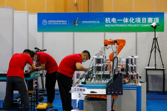 本次大賽是中國首次舉辦的面向世界職業院校的大賽,由教育部、國家發展和改革委員會等35家主辦單位共同發起。機電一體化項目參賽選手以2021年全國職業院校技能大賽國賽獲獎選手及魯班工坊國內外建設院校為主角逐金、銀、銅獎及優秀獎。其中有9支隊伍是上一年度本賽項全國職業技能大賽的前九名,參賽選手實力強勁。競賽采取“0.5+0.5”的“手拉手”中外混合編隊形式完成競賽。這種全新的組隊與競賽形式,促進世界技能人才互學、互鑒,為新時代培養更高素質技術技能人才提供了平臺,助力后疫情時代全球經濟發展。
