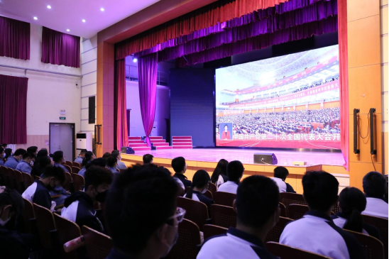 學院黨委高度重視此項工作,專題部署,精心組織,嚴格落實,并按照疫情防控要求,組織安排學院全體黨員干部教師和學生觀看大會盛況。天津教委高教處副處長許晶來到我校與學院領導班子成員和廣大黨員教師一起收看開幕會盛況。為了方便師生們觀看開幕會,學院特別在可容納近700人的學院禮堂、容納200人的六角報告廳設立直播主會場和多個分會場,師生們熱情高漲,現場座無虛席,共有365名干部教師職工和2150名學生觀看開幕會盛況。