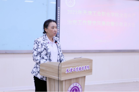4月17日下午,學院黨委在繼續教育中心召開2023年天津工業職業學院全面從嚴治黨工作暨黨風廉政警示教育大會,傳達學習習近平總書記關于全面從嚴治黨相關論述及相關會議精神,部署學院全面從嚴治黨相關工作。學院領導班子及全體中層干部參加會議。會議由學院黨委副書記柴娜娜主持,黨委書記汪坪講話。