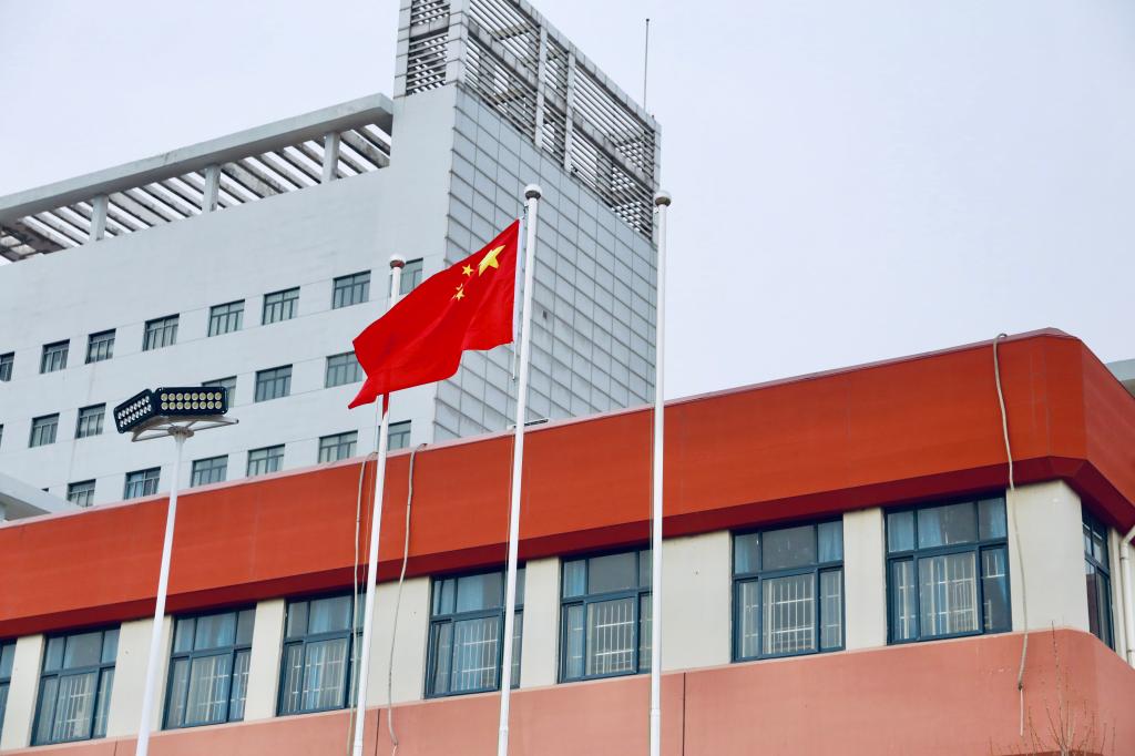 懷著對祖國無限熱愛和崇高的敬意,全體在場師生齊唱國歌,行注目禮,莊嚴肅穆,五星紅旗高高飄揚在學院上空。