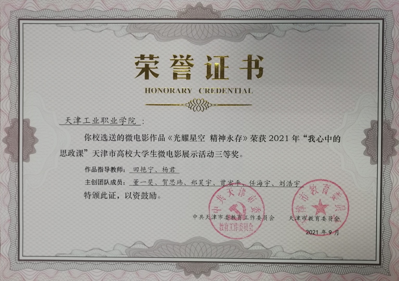 我院思政課部田艷寧、楊君老師指導的學生作品榮獲“我心中的思政課”天津市高校大學生微電影展示活動三等獎。兩位老師被授予優秀指導教師稱號,學院榮獲優秀組織單位獎。據悉,該微電影作品同時被天津市推薦參評全國高校大學生微電影展示大賽。