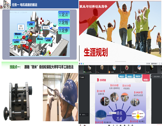《工業機器人操作與維護》課程以“電機底座的搬運”任務為例,展示了技術與安全、細節、目標管理等元素的巧妙融合;《機電設備維修與維護》以“齒輪箱內齒輪部件的裝配”任務為例,植入浙江工匠——“微米”級齒輪裝配大師的視頻素材,展示“工匠精神、勞動教育”元素;《就業與創新創業指導》一課,教師變身為夢想講解員,帶我們步入“夢想展廳”,看到了學生們為自己人生規劃的七彩夢想;《工業機器人操作與維護》以課堂設計、課堂魅力、考核評價、思政融入4個環節,向我們展示了“課堂革命”的課程建設和改革思路。