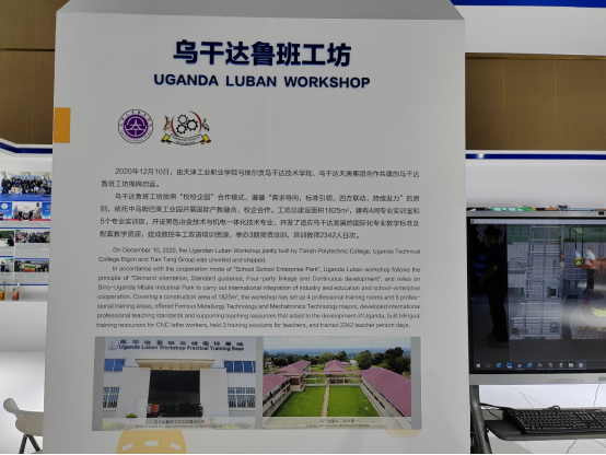 天津工業(yè)職業(yè)學(xué)院建設(shè)的烏干達(dá)魯班工坊作為魯班工坊建設(shè)發(fā)展成果展之一,在世界職業(yè)教育產(chǎn)教融合博覽會(huì)上進(jìn)行成果展出。烏干達(dá)魯班工坊展區(qū)展出的成果包括兩個(gè)專業(yè)9冊(cè)出版的雙語(yǔ)教材(棒材生產(chǎn)技術(shù)、冶金概論、連鑄生產(chǎn)技術(shù)、爐外精煉技術(shù)、煉鋼生產(chǎn)技術(shù)、維修電工職業(yè)技能訓(xùn)練、電氣控制與PLC應(yīng)用、數(shù)控加工技術(shù)、機(jī)電創(chuàng)新智能應(yīng)用技術(shù))、1冊(cè)數(shù)控車工雙語(yǔ)培訓(xùn)教程、烏干達(dá)魯班工坊建設(shè)紀(jì)實(shí)、津塔工藝品和烏干達(dá)魯班工坊紀(jì)念徽章。此外還包括工業(yè)集控中心體驗(yàn)和工業(yè)VR漫游體驗(yàn),以煉鋼生產(chǎn)線為工廠工藝載體,采用3D 動(dòng)畫及虛擬仿真技術(shù),再現(xiàn)工廠生產(chǎn)線環(huán)境,采用智能控制技術(shù),為學(xué)生提供虛擬生產(chǎn)線場(chǎng)境和仿真操作環(huán)境。