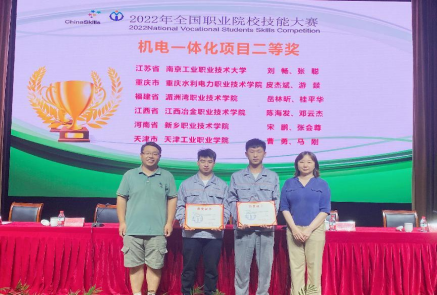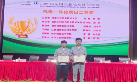 2022年8月26日,全國職業(yè)院校技能大賽高職組機電一體化賽項在浙江機電職業(yè)技術學院舉行。該賽項為團體賽,共有來自全國29個省(市)、自治區(qū)的55支代表隊110名選手參賽,每個賽隊由2名選手組成,該賽項設置對標世賽機電一體化項目,55支賽隊于8月26日、27日分別進行了兩場比拼,單天比賽時長超過18個小時(競賽+評分),極其考驗著選手們的技術綜合能力、體力和意志力。我院機械工程系機電一體化技術專業(yè)學生曹勇、馬剛同學代表天津市參賽國賽,最終通過不懈努力取得了機電一體化項目全國二等獎的優(yōu)秀成績,為天津市、為學院爭得榮譽!