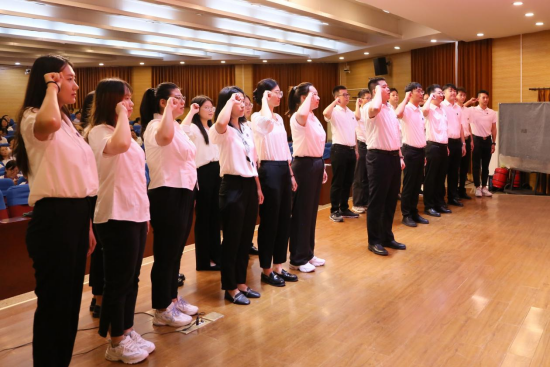 “天津工業職業學院歡迎您”學院新入職教職工宣誓儀式。鏗鏘的誓言回蕩在會場,代表著23新入職教職工不忘初心、牢記使命,用青春之我、奮斗之我,共同譜寫工職院精彩的華章。學院領導為新入職教職工頒發了校徽,工業與信息化系教師、輔導員董金瑋老師代表23名新入職教職工發言。