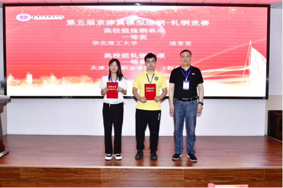 隨后進(jìn)入大賽閉幕式,本屆大賽共評(píng)選出煉鋼單項(xiàng)獎(jiǎng)17名,軋鋼單項(xiàng)獎(jiǎng)16名,團(tuán)體獎(jiǎng)6名,大賽突出貢獻(xiàn)獎(jiǎng)2名。京津冀三地金屬學(xué)會(huì)和學(xué)院領(lǐng)導(dǎo)出席大賽閉幕式并為獲獎(jiǎng)團(tuán)體和個(gè)人頒獎(jiǎng)。我院選手在本次大賽中表現(xiàn)出色,分別斬獲了高校組團(tuán)體一等獎(jiǎng)和軋鋼單項(xiàng)一等獎(jiǎng),學(xué)院獲得大賽突出貢獻(xiàn)獎(jiǎng)。