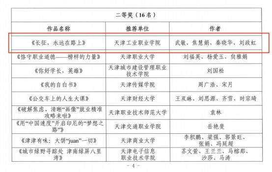 近日,我校思政課部武敏、焦慧娟、秦曉華和劉政虹團隊在天津市教育工委、市教委組織開展的“心動一課”思政微視頻推選活動中以作品《長征,永遠在路上》喜獲二等獎。