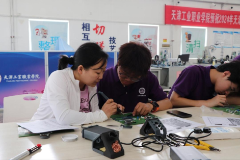 活動現(xiàn)場,首先專業(yè)老師們結合藍牙音箱的具體構造為學生講解了藍牙音箱的工作原理、自制流程、工具的使用方法和注意事項等。然后,同學們通過電路圖識讀、元器件識別檢測和插裝、電子焊接操作、電路通電檢測、產品組裝調試等流程完成藍牙音箱的制作。活動過程中同學們積極與老師溝通交流,注重細節(jié),將理論知識與操作技能完美融合。