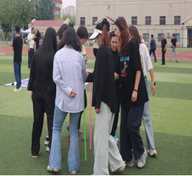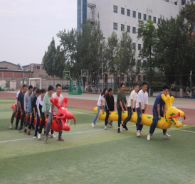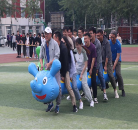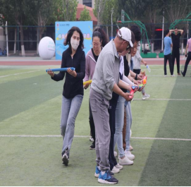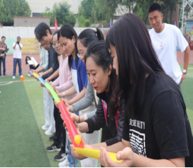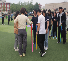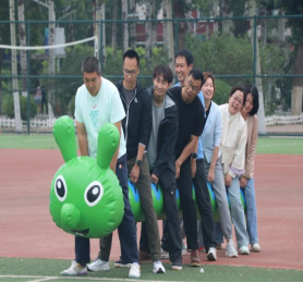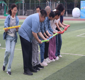 隨后趣味比賽項目火熱開啟,不倒森林、能量傳輸、同心鼓、毛毛蟲四項活動現場氣氛熱烈。在不倒森林比賽中,8 名隊員默契配合,小心翼翼地傳遞細管;能量傳輸環節,隊員們全神貫注,確保彈力球順利傳輸;同心鼓比賽里,大家齊心協力,讓網球一次次高高彈起;毛毛蟲項目中,隊員們喊著口號,步伐一致地沖向終點。賽場上,加油聲、歡笑聲此起彼伏,老師們在協作中釋放壓力,增強團隊凝聚力,增進了彼此間情誼。