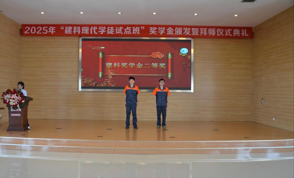 2025年5月29日上午9點,天津工業(yè)職業(yè)學(xué)院2025年“建科現(xiàn)代學(xué)徒制試點班”獎學(xué)金頒發(fā)暨新學(xué)員拜師典禮在建科智能裝備制造(天津)股份有限公司隆重舉行。學(xué)校黨委副書記、院長楊理連帶隊,機械工程系、教務(wù)部、校企合作和對外交流辦公室主要負(fù)責(zé)人出席;建科智能常務(wù)副總經(jīng)理張新出席,企業(yè)人力資源行政部、生產(chǎn)管理部、電氣管理部、技術(shù)管理部、科技發(fā)展中心主要負(fù)責(zé)人及一線師傅和學(xué)徒等共計100余人參加。