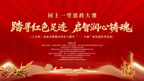 6月19日,由天津工業職業學院牽頭成立的“聚能鄉村振興,啟智潤心鑄魂”京津冀“行走的思政課”協作共同體聯合天津市河西區教育局、邯鄲職業技術學院以及新疆生產建設兵團第十一師教育局,在河北省邯鄲市涉縣河南店鎮八路軍“一二九師”政治部禮堂舊址舉行“踏尋紅色足跡,啟智潤心鑄魂”同上一堂思政大課活動,來自天津市、河北省、新疆生產建設兵團第十一師以及甘肅省等地近萬名師生參加。